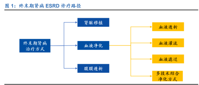 1、血液透析是最常用 ESRD 疗法,产业增量空间广阔